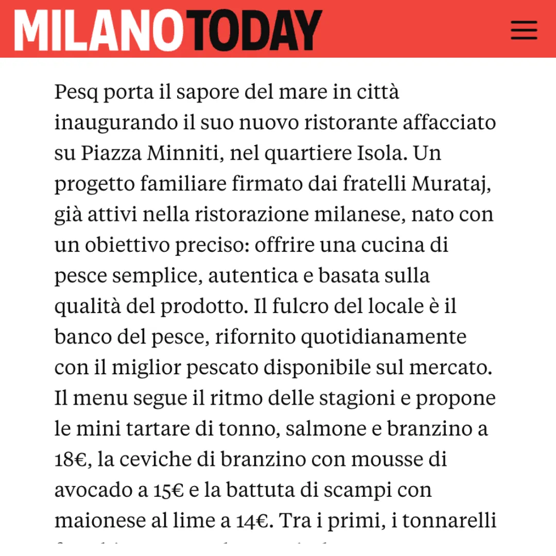 Tutta Milano sta scoprendo PESQ, citato sulle principali testate gastronomiche italiane come nuova apertura imperdibile dell’autunno milanese: